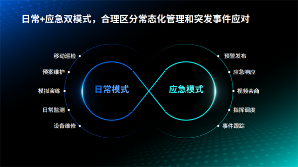通過日常+應急雙模式,合理區(qū)分常態(tài)化管理和突發(fā)事件應對。日常模式下,通過日常監(jiān)測、預案維護、移動巡檢、設備檢修、模擬演練等手段,確保城市水安全。一旦啟動應急模式,迅速在平臺發(fā)布預警信息,通過視頻會商聯(lián)動各部門應急響應,統(tǒng)一指揮調(diào)度,進一步分析研判雨情汛情災情,部署防范應對工作,全面提升應急處置能力。