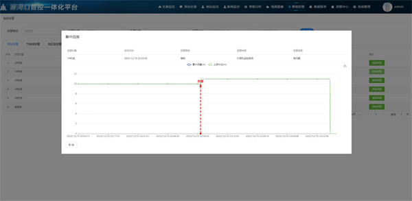 分類展示泵站、節(jié)制閘、船閘等的告警信息,支持對告警信息進行人工干預(yù)??梢酝ㄟ^后臺關(guān)聯(lián)相關(guān)性影響指標(biāo),獲取告警前后相關(guān)性影響指標(biāo)瞬時的變化趨勢,為用戶分析告警原因提供參考依據(jù)。