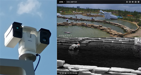龍子湖東南片公園面積較大,龍鱗疊水、金沙灘、游龍棧道等處游客眾多,存在一定安全隱患。智慧一體桿頂端部署了熱成像觀測型四目中型云臺監(jiān)控系統(tǒng),滿足景區(qū)夜間/惡劣天氣、中/遠距離監(jiān)控清晰成像的需求,公園防火防災(zāi)、禁漁禁捕、水環(huán)境污染監(jiān)測、防溺水等場景的一舉一動盡收眼底,實現(xiàn)“全覆蓋、全天候、智能化”監(jiān)管。