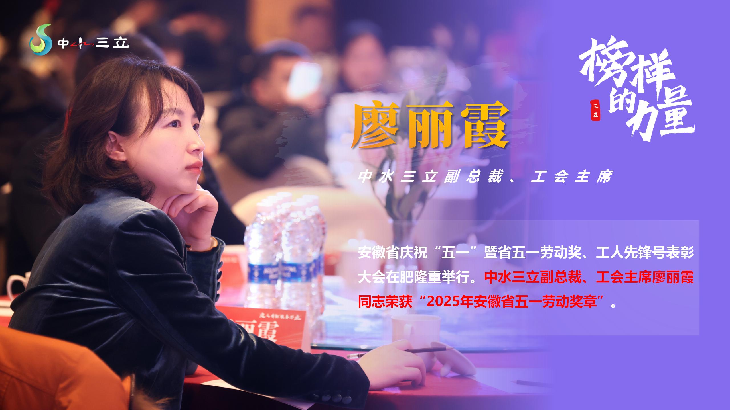 近日,安徽省慶祝“五一”暨省五一勞動獎、工人先鋒號表彰大會在合肥隆重舉行,充分發(fā)揮勞模先進的榜樣作用,奮力譜寫中國式現(xiàn)代化安徽篇章貢獻智慧和力量。中水三立副總裁、工會主席廖麗霞同志榮獲“2025年安徽省五一勞動獎章”。