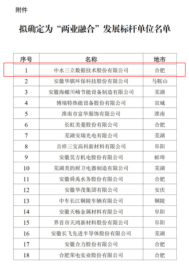 涉水人工智能領(lǐng)域唯一上榜!中水三立入選安徽省“兩業(yè)融合”發(fā)展標桿單位