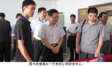 2012年8月24日下午,合肥市科技局朱策局長一行來我公司視察工作,同行的還有何江副局長等科技局相關處室領導、蜀山區(qū)政府及區(qū)管委會相關領導。朱局長一行參觀了我公司省級水務自動化工程技術研究中心及產品生產中心,并認真聽取了公司創(chuàng)新及業(yè)務開展工作情況的匯報,會上朱局長一行針對公司現(xiàn)階段發(fā)展情況進行了深入的探討和交流,并提出了寶貴的意見和建議。